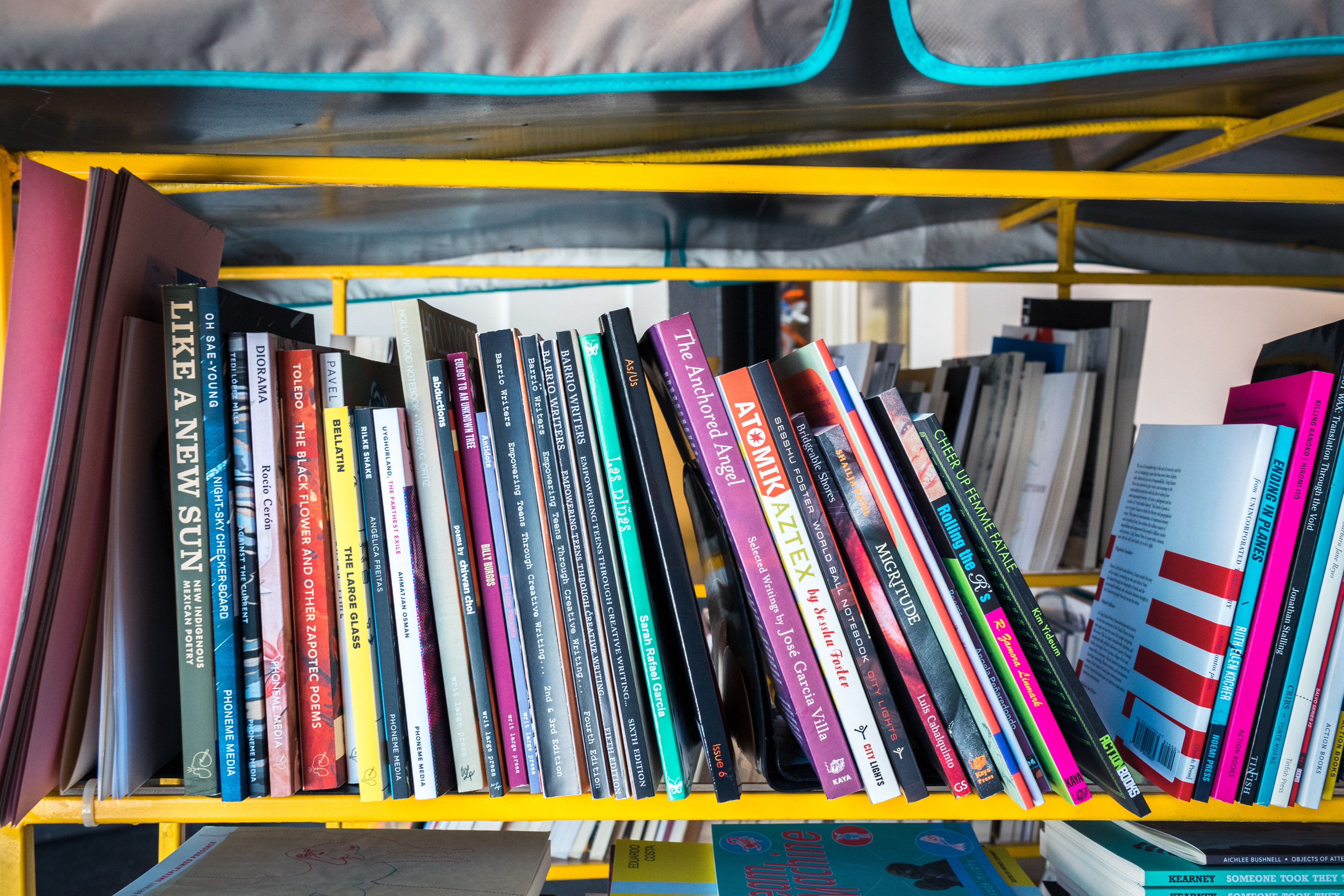 The books on the AntenaMí³vil are for sale and for reading on-site. The selection focuses on small-press publications from the U.S. and Latin America, and features bilingual and multilingual works, work in translation, and innovative texts by writers of color. These books would not be here without the tremendous labor of love of the many writers, editors, designers, and publishers who make the vast worlds of small- and tiny-press publications exist.