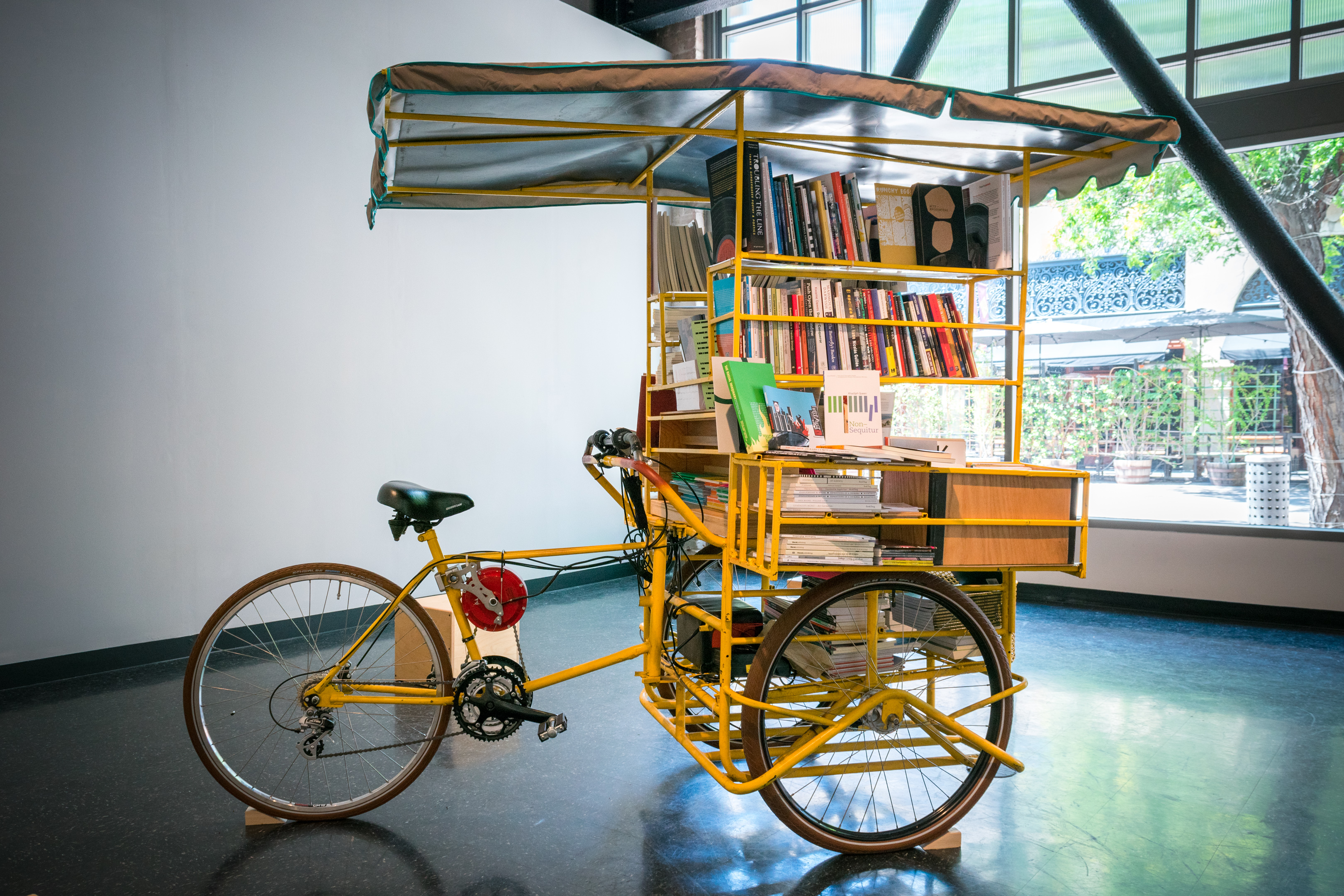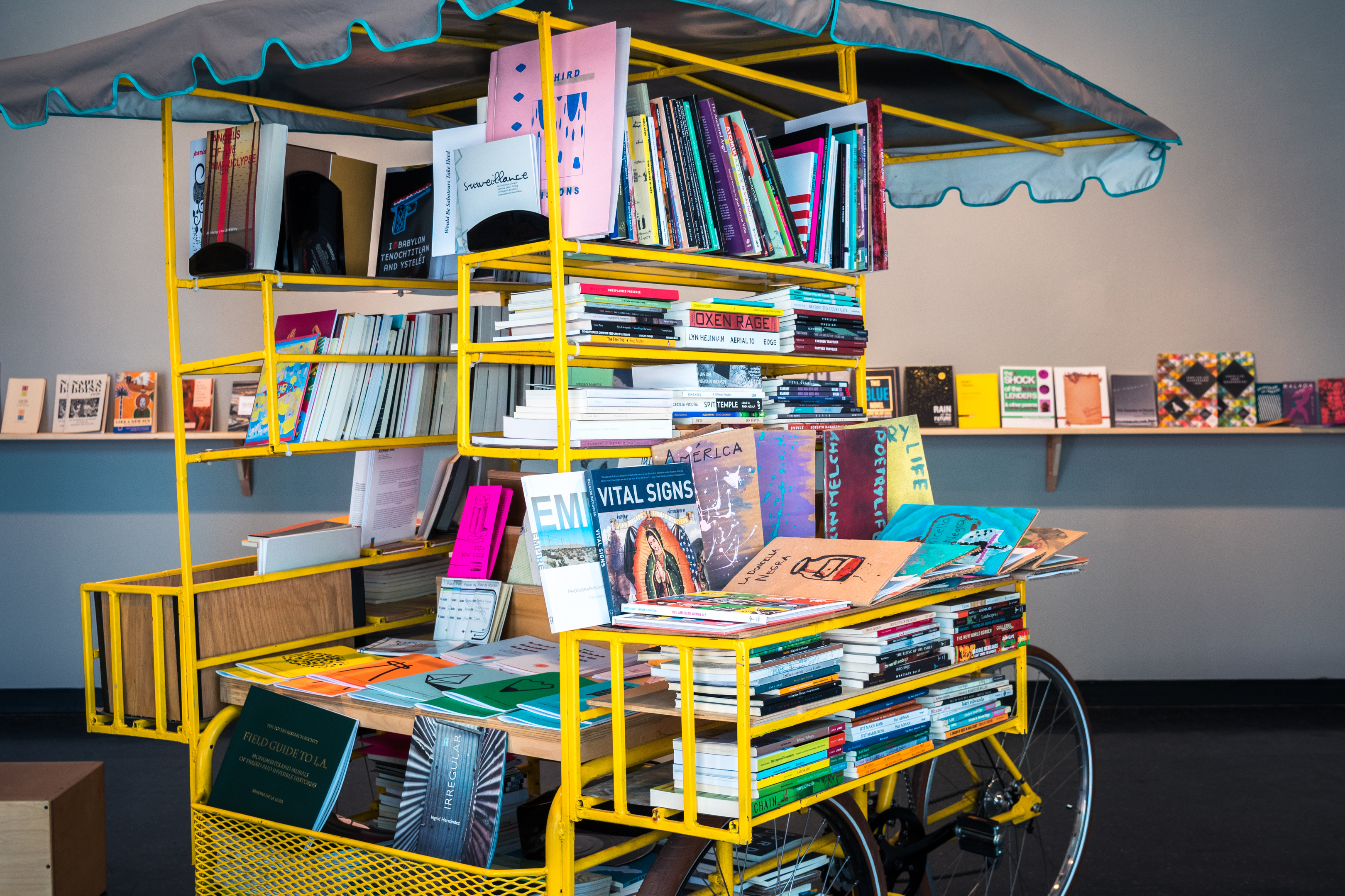The AntenaMí³vil is a retrofitted Mexican cargo tricycle stocked with books that are for sale and for reading on-site. The selection focuses on small-press and DIY publications from the U.S. and Latin America, and features bilingual and multilingual works, work in translation, and innovative texts by writers of color.