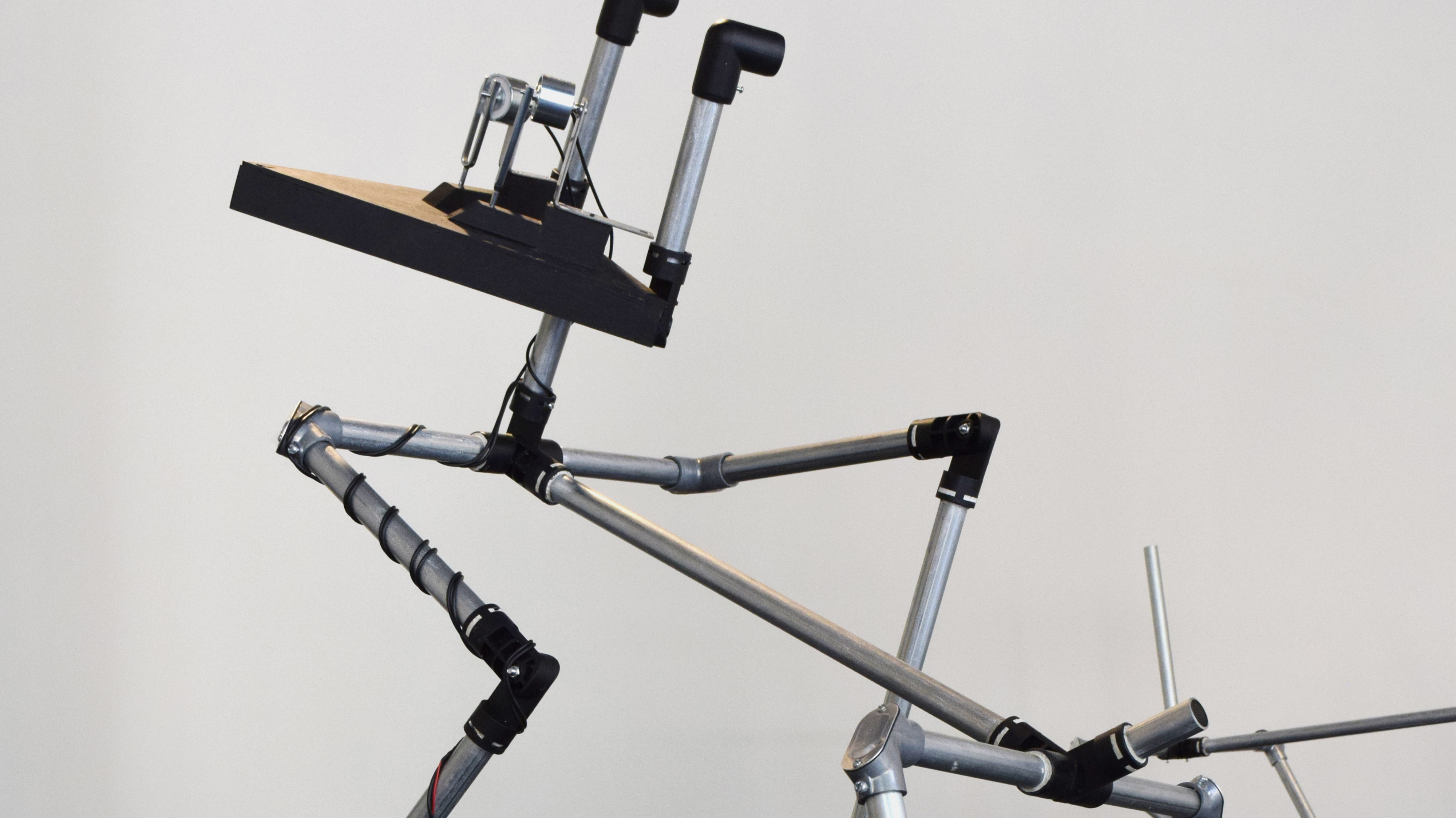 Based on an 1859 experiment by German Scientist Franz Melde, TINES are tuning forks that are vibrated by precisely directed magnetic fields. Pulsing a strong electromagnet at the resonant frequency of a tuning fork causes it to start oscillating (and producing sound). The deer-like sculptures act as resonators to increase the audibility of the tuning forks, amplifying their otherwise faint tones into raw materials for a digitally constructed audio composition.