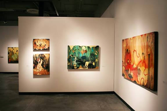 Camille Rose Garcia was born in 1970 in Los Angeles, California and grew up in the generic suburbs of Orange County, visiting Disneyland and going to punk shows with the other disenchanted youth of that era. Her paintings of creepy cartoon children living in wasteland fairy tales are critical commentaries on the failures of capitalist utopias.