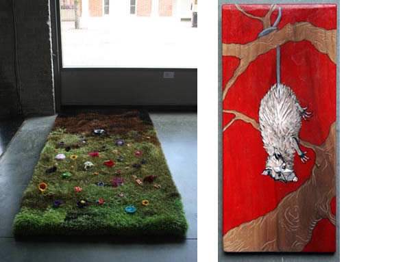 For this reason, Delusionarium 1 and 2 shows explore the huge and open topic of The Romantic. Loaded with potential meanings and aesthetic conversations, the topic of The Romantic is such a broad idea that it allows for a great range of responses from the artists. Though there are occasional links in sensibility and/or in form between projects, each Delusionarium artist poses his/her own specific relationship to the topic and to the conditions of the site. Subject matter, materials, and methodology all range widely amongst the artists in Delusionarium. As for their relationships to The Romantic, artists pose positions that are sometimes cynical, sometimes hopeful, or both.
