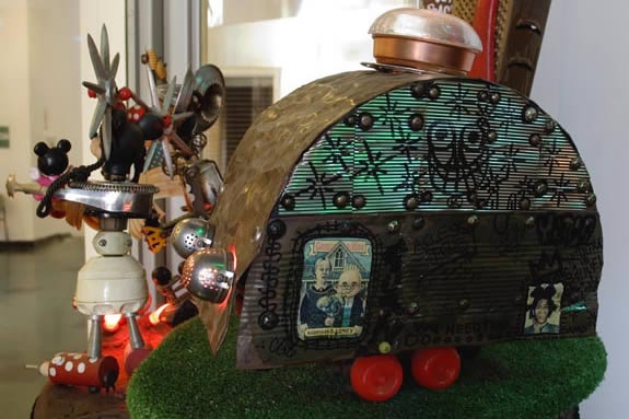 Questioning the integrity of our current energy policies and the ethics of today’s unsustainable American way of life, Oil Elastic-World of Plastic awakens the dormant consciousness of an American consumed with consumption, confronting an impending global calamity escapable through revolutionary activism or worse: by fate of extraterrestrial divinity. Artist Rick Frausto creates a tribute installation dedicated to the research of activist Charles Moore, founder of the Algalita Marine Research Foundation.