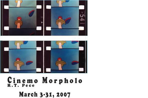 R.T. Pece’s works in antonymic contrasts. His paintings are a construct of crisp line, bright color, and technical clarity appearing as whimsical pop iconography while remaining mysteriously vague and complex in their visual associations. His ambiguous characters come to life in quirky, hand drawn animation and stock footage films to create a documentary of a fictitious scheming artist that is perpetually foiled by reality.