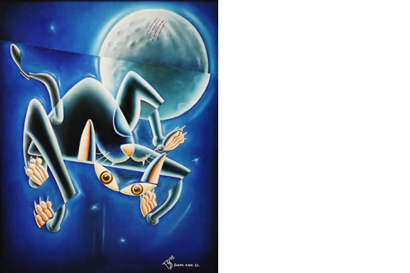 The paintings in this series reflect a darker view of humanity that Bruce Linn says he encountered in some of the art and other cultural expressions of central Europe during an artist’s residency in Prague at the start of the current Iraq war. According to Linn, the absurdist aesthetic he discovered in Czech capital, inspired him to more freely blur the line between satiric and poetic artistic objectives.