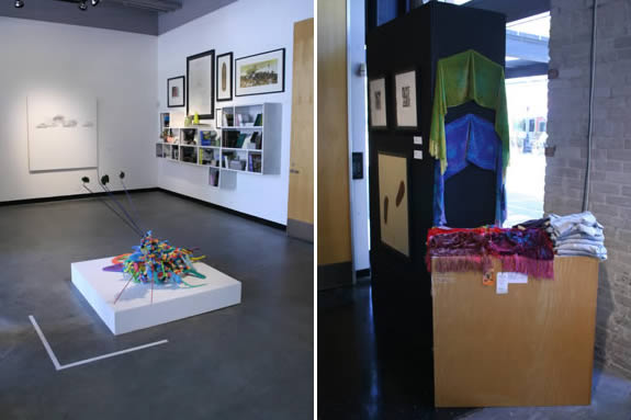 Leysen’s paintings are abstract fields of color that evoke the landscape. Thayer presents her geomorphic wheel- thrown sculpture that combine landscape and topographical survey ideas, inspired by flight over the Northwest landscape.
