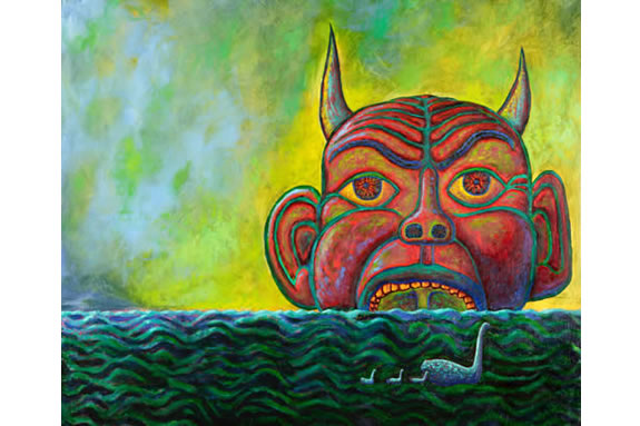 The Cal State Fullerton Grand Central Art Center presents the first solo exhibition by self-taught Southern California-based artist Myron Conan Dyal. Primordial Images of a Modern Mystic features 18 paintings, 12 drawings and 20 sculptures from Dyal’s vast oeuvre spanning nearly three decades. His imagery is overwhelmingly dark and haunting and obviously created with obsession and compulsion: he uses papier-mache to create his sculpture, in large part, because its immediacy accommodates his urgency to see his objects in three-dimensional form. His usually figurative or organic forms are derived from visions he experienced during epileptic seizures and self-induced trances he encountered on his spiritual journey to come to grips with his lifelong struggle with the epilepsy and its stigma. A classically trained musician and telecommunications executive, Dyal kept his prolific production of art secret for many years–only showing it to family and a few close friends until recently.