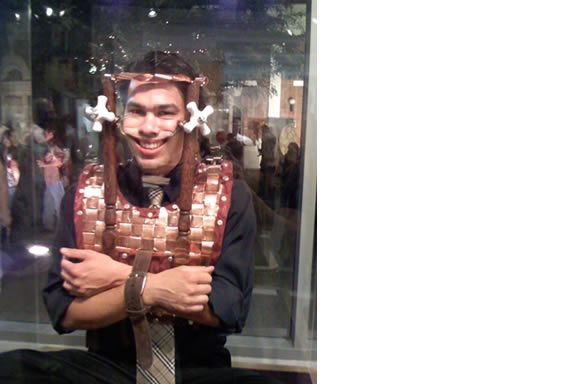 Using the conventions of both traditional museum display and print-media marketing, Burns humorously combines his tiny rescue and safety items for animals with helpful information that guides viewers through the exhibition. Beneath the appeal of the miniscule safety vests, work gloves, bullet-proof vests, U.V. goggles and respirators developed for our furry friends, lies a frightening warning about our stewardship of the environment. Publications by SGSA include titles like How to Help Animals Escape from Natural History and How to Help Animals Escape from Degraded Habitats. The exhibition is geared towards viewers of all ages, with special displays and tours for children.