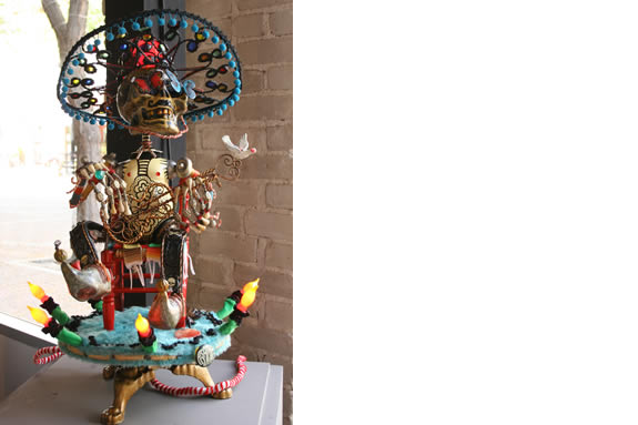 The Assemblage sculptures by Long Beach social and environmental artist Rick Frausto featured in this exhibition are created from common found objects such as old wire, torn plastic, broken toy parts and more discarded as waste then rescued and transformed into whimsical and fantastic characters.