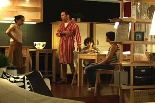 Here in Your Space focuses on the work of three artists – Guy Ben-Ner, Christian Jankowski and Gillian Wearing – engaging in private/pubic space. In the home setting displays of Ikea, the aisles of a supermarket and atrium of a shopping mall, the artists use the medium of video to capture their own private performative actions within these public spaces. All three videos occur in corporate environments – the privately owned spaces that, for much of United States society, have become our defacto places for public gathering.