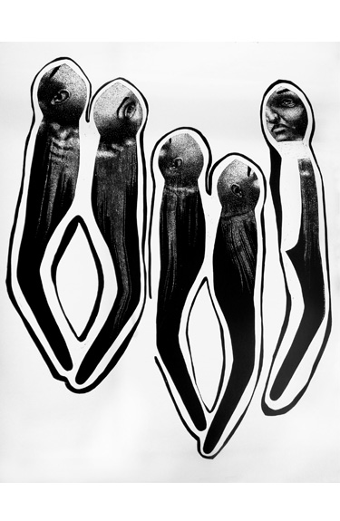 My artwork is comprised of three-dimensional and two-dimensional prints. The three-dimensional prints I refer to as “volumes.” The printed imagery of the two-dimensional and three-dimensional pieces is generated through relief printing. My artwork deals with the concepts of narrative, repetition, and what has been called “otherness.” Narration in the artwork refers to the capacity people have to project onto or empathize with any object that has similarities to humans. My work invites the viewer to empathize with the figures, often without ever reaching beyond the uncanny quality of being inanimate bodies. The figures engage with each other in their posture and position in a room, and sometimes engage the viewer. Their ambiguity and lack of personality invites the viewer to associate with the figures, to lose themselves, while at the same time implying anonymity in the viewer.