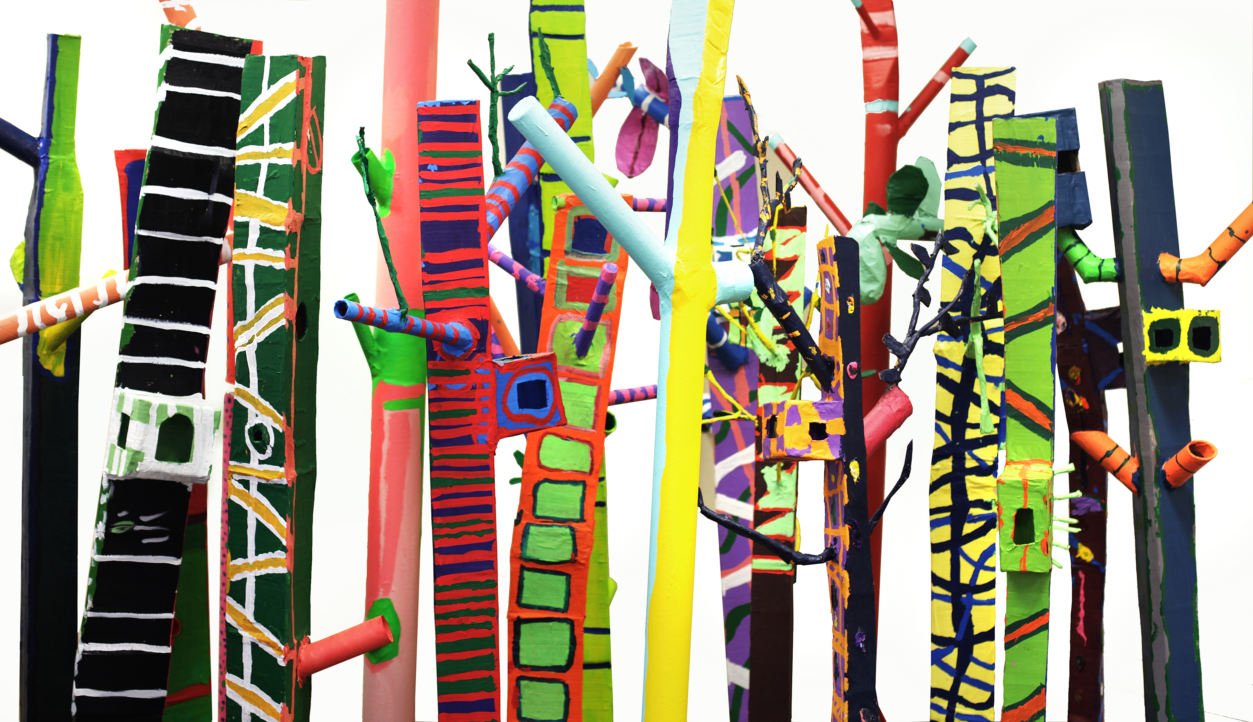 The artists wish to thank the various individuals who contributed along the way – collaborative visionary Lisa Lo Russo, sound and video team Sarah Breucrop & Brian Aquino, and all the teachers and students from Hope Center for the Arts – their assistance made this forest come to life.